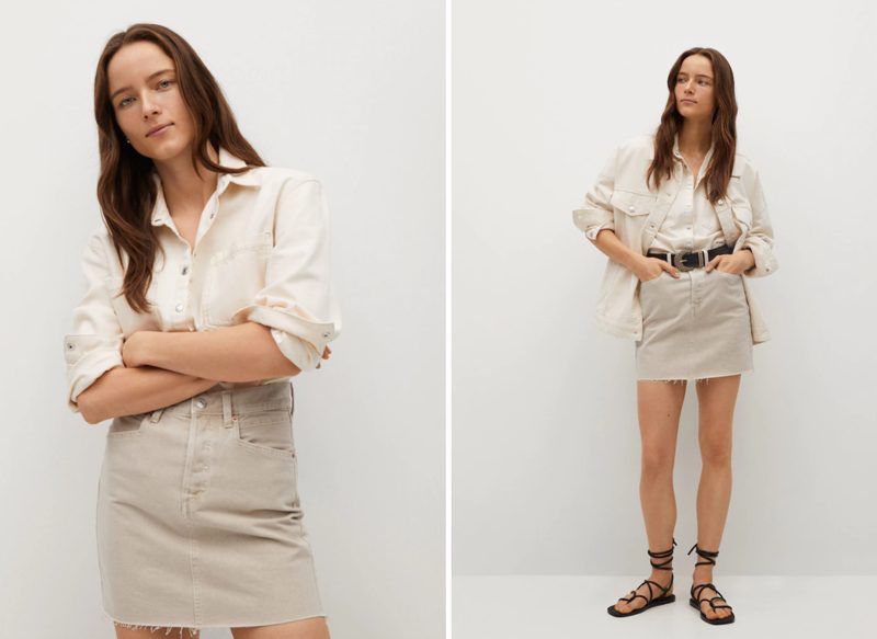La llegada de temperaturas más elevadas empieza a ser el momento de utilizar prendas más cortas sin tener que lidiar con el frio del invierno. Entre las numerosas faldas que podemos encontrar en Mango, debemos mencionar a esta minifalda denim que está disponible en beige, negro, blanco y azul medio. Su precio es de 19,99 euros.