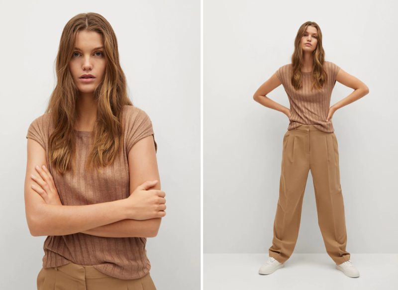 Entre las prendas superiores que podemos encontrar en el catálogo de Mango y que sorprenden por su precio está este top canalé algodón por 19,99 euros. Disponible en marrón medio y beige, es una prenda muy fácil de combinar y que ofrece un gran acabado estético.