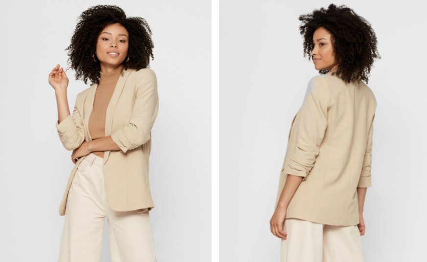Su diseño está pensado para algo más casual y días calurosos, no sólo por su ligereza, sino porque no se cierra y por tanto no tiene botones, y se lleva con la manga en 3/4, dejando el antebrazo desnudo. Un blazer ideal para llevar como se ve con prendas amplias y cómodos, con un look de lo más tendencia para esta primavera-verano. Seguro que ya te ves con él para tus paseos de compras o en una terraza.