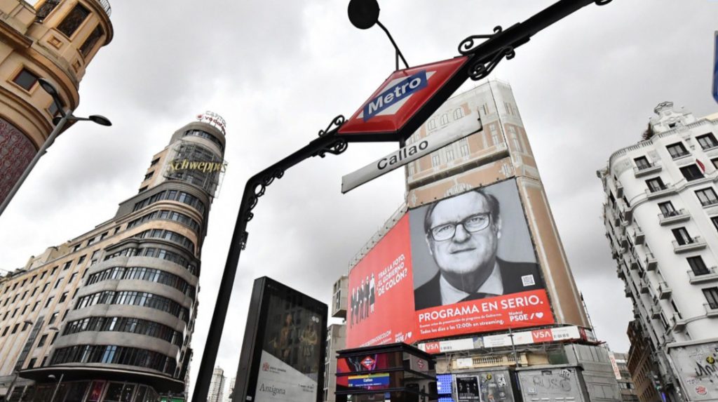 La Ley electoral es muy clara al respecto. «Desde la convocatoria de las elecciones hasta el inicio legal de la campaña, queda prohibida la realización de publicidad o propaganda electoral mediante carteles, soportes comerciales o inserciones en prensa, radio u otros medios digitales, no pudiendo justificarse dichas actuaciones por el ejercicio de las actividades ordinarias de los partidos, coaliciones o federaciones reconocidas en el apartado anterior», señala la normativa. Es probable que esta imagen de Gabilondo en Callao desaparezca más pronto que tarde.