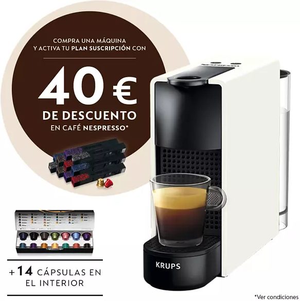 Nespresso es la marca estrella es café de cápsulas, y uno de sus modelos más vendidos es el Krups. En este caso se trata de una cafetera mini con capacidad de 0,6 litros, para disfrutar de un buen café en cualquier momento. Krups ha incorporado un mecanismo de apagado automático después de 9 minutos, aunque también se puede programar manualmente. Gracias a los 19 bares de presión el sabor del café es más intenso, algo que se nota desde el primer sorbo. Además Nespresso regala 14 cápsulas y 20 € de descuento directo en café al comprar 100 cápsulas. Con la oferta de Mediamarkt podemos llevarnos esta cafetera por 69 €, una oferta realmente interesante, ya que el precio original es de 99 €.