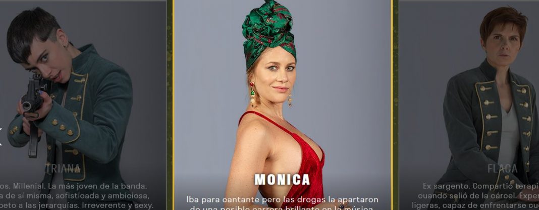 También están Triana (Claudia Riera), una millenial. La más joven de la banda. Segura de sí misma, sofisticada y ambiciosa, sin respeto a las jerarquías. Irreverente y sexy. Es experta en abrir cajas de seguridad, con dos juicios pendientes por hackeo. Otra protagonista de la serie de Netflix es Mónica (Lisi Linder), que iba para cantante pero las drogas la apartaron de una posible carrera brillante en la música. Ah, es la hijastra de Víctor Ramala.
