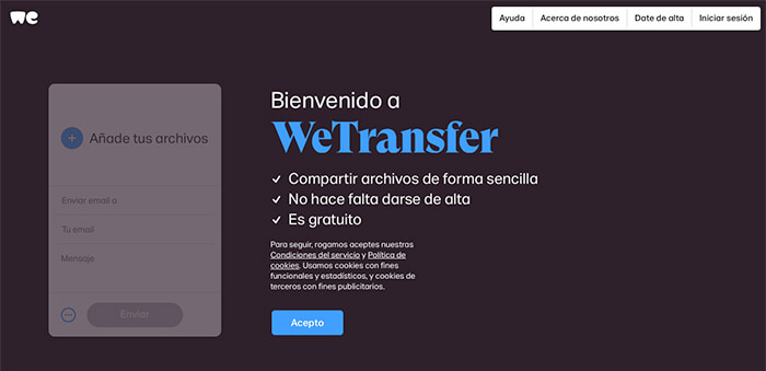 Como te decimos, seguro que has estado en situaciones de mandar ese vídeo que has hecho durante una celebración pero que pasa más de un giga. O esas fotos de un partido de fútbol que no puedes mandar por email porque su tamaño es excesivo. ¿Cómo hacerlo para enviarlo a otra persona? Pues bien fácil, con un programa como Wetransfer que es muy útil y sencillo de manejar.