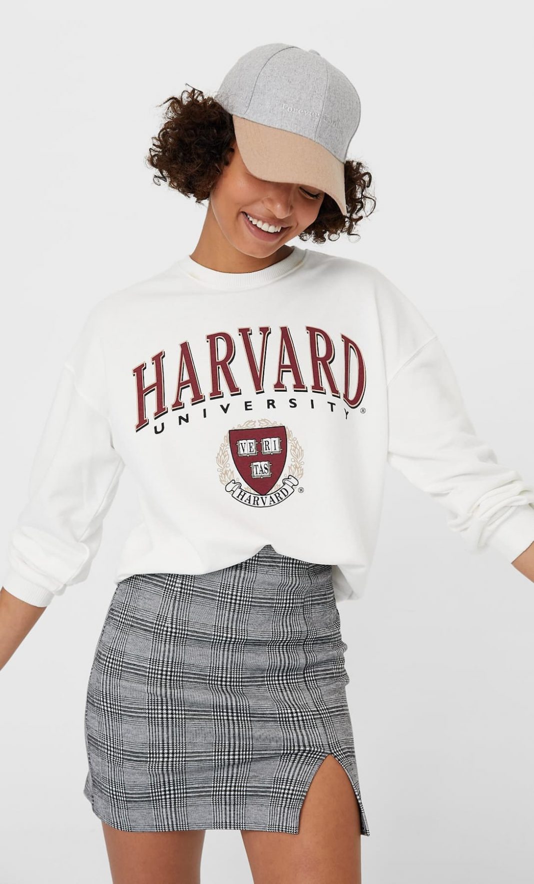 En este caso estamos hablando de una falda de tiro alto y detalle abertura en lateral y que viene con un cierre con cremallera oculta. Viene en color crudo y en todas las tallas, desde la XS hasta la XL. Llévalo con unas zapatillas de deporte e incluso con un bolso. Si quieres hacer como la modelo prueba con una gorra.
