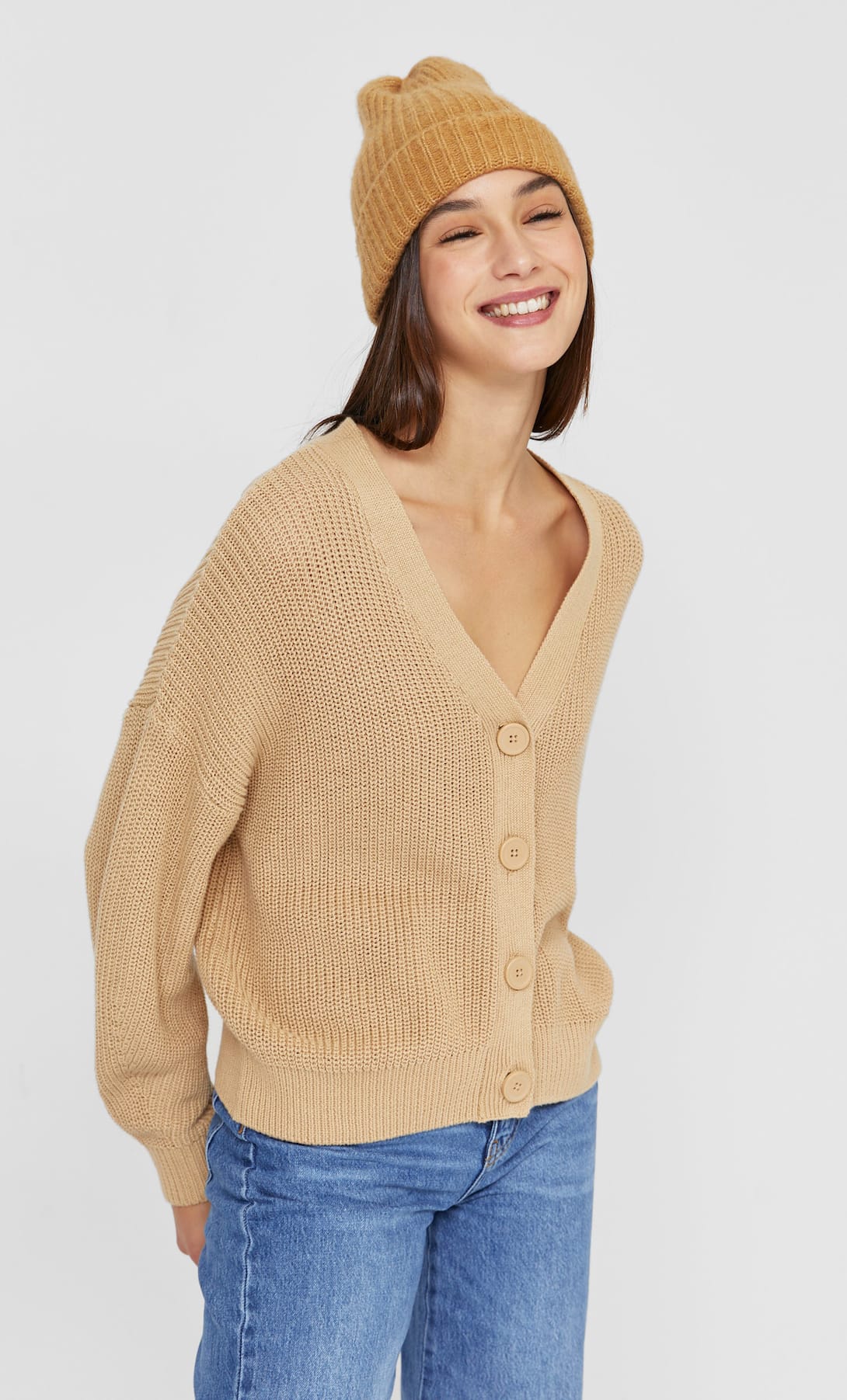 Apostamos por esta cardigan de punto con escote pico y manga larga, que además viene con cierre con botones. El precio viene rebajado un 15%, ya que de 19.99 euros pasa a 12,99 euros. Una prenda que la puedes encontrar en muchos colores: lila, vainilla, beige o azul. Su tallaje es XS, S o M. Ahora echa un vistazo a la web y renueva tu armario.