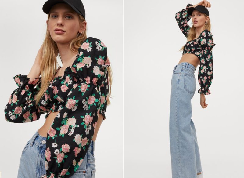 En el catálogo de H&M hay muchas prendas que tan solo por su precio deben estar en tu armario para esta primavera. Un claro ejemplo es esta blusa cropped en acabado negro floral. Su precio de venta es de 9,99 euros.