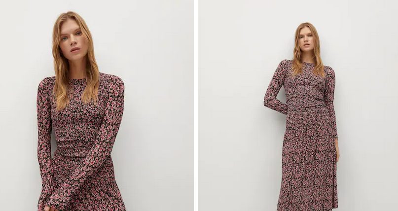 Los vestidos de flores además vienen con muchos más detalles. Te recomendamos este vestido estampado floral de volante que puedes tener en Mango por solo 19.99 euros, está en rebajas porque anteriormente costaba 29.99 euros, que baja un 20%.