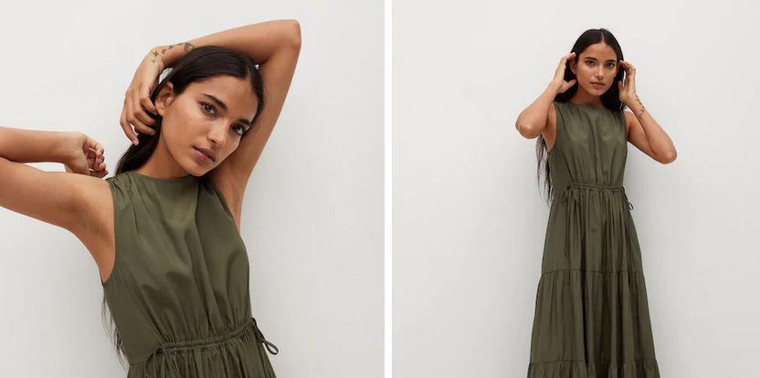 Su precio es de solo 29,99 euros, al estar en rebajas, y sus colores son Khaki, naranja y azul celeste. La verdad es que es uno de los vestidos más chulos que hemos encontrado en el escaparate de Mango. ¿Qué te parece?
