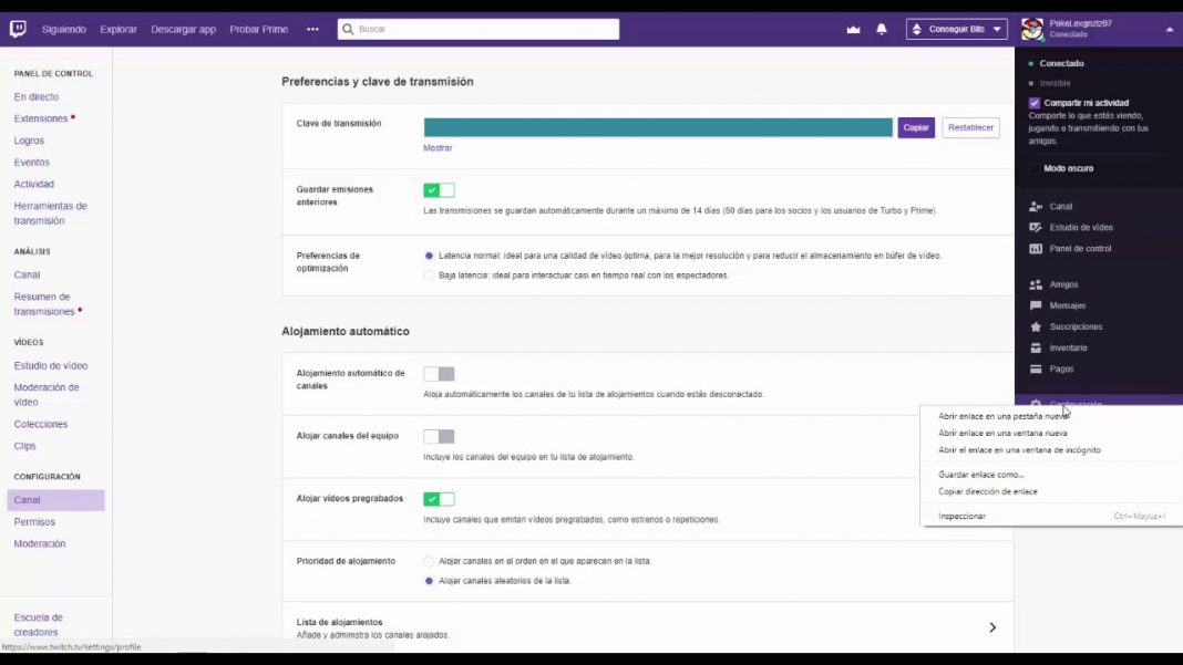 Seguidamente tenemos que buscar en las opciones que vemos en la parte izquierda de la pantalla la que pone Transmisión, que lleva un dibujo de una rueda dentada justo al lado. En la siguiente pantalla debemos marcar la opción Guardar transmisiones anteriores. De esta manera se van a guardar todas las retransmisiones, videos y demás dentro de Twitch.