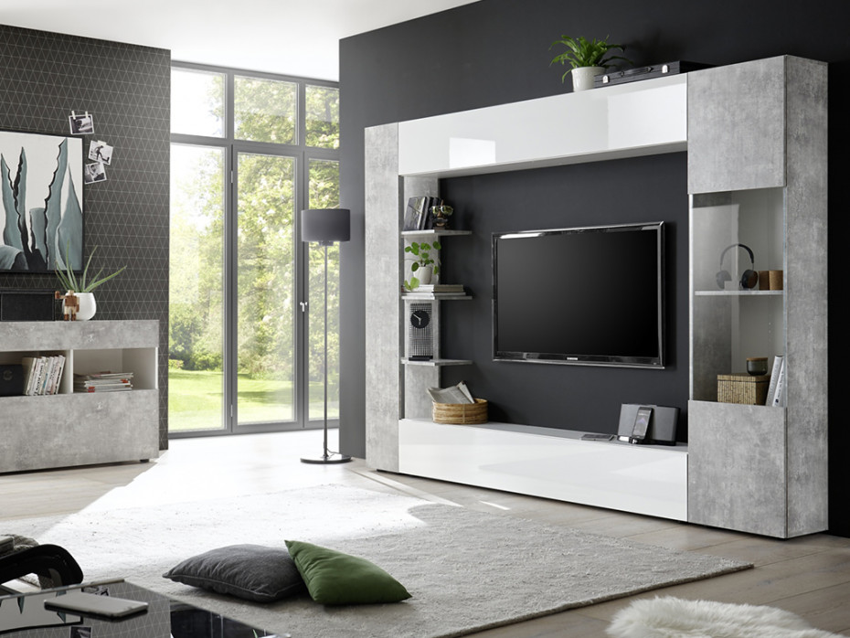Es un mueble auxiliar de madera en color blanco, que contiene un acabado brillante perfecto para colocar tu televisor en el salón. Su estructura del módulo, tiene incorporado una balda y una puerta abatible que nos servirán como zona de decoración y almacenaje. Además, tiene un diseño y estilo que aporta una estética moderna y actual a tu salón.