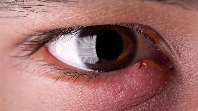 Los que padecen de esta enfermedad en los ojos padecen de dolor y presión en la zona afectada. Estas infecciones afectan a los párpados superiores o inferiores, independientemente de las glándulas infectadas. Existen los orzuelos internos y externos, los internos se encuentran localizados dentro de los párpados. Estos producen enrojecimiento e inflamación del párpado, y no son visibles en algunos casos. Mientras que el externo, se puede visualizar.