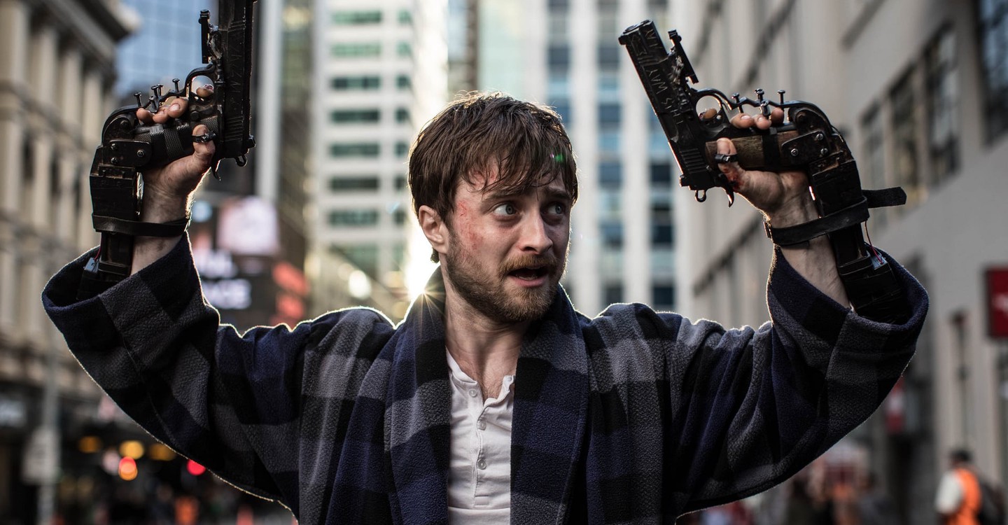 El último estreno de Daniel Radcliffe, fue Guns Akimbo, en 2019, traducida en España como ‘Manos a las armas’ y disponible en Amazon Prime Video. Se trata de una comedia negra de acción bastante loca, en la que el actor de Harry Potter interpreta a Miles, un joven en plena crisis existencial, atrapado en un trabajo sin futuro y aún enamorado de su ex novia. Un día descubre que un grupo mafioso llamado ’Skizm’, está organizando una competición para reunir a participantes en distintos puntos de la ciudad para ver cuál de ellos consigue más espectadores online. De nuevo el actor británico demuestra que es capaz de afrontar todo tipo de papeles, con un nuevo cambio físico en el que vemos a un Radcliffe en la piel de un adulto totalmente desquiciado.