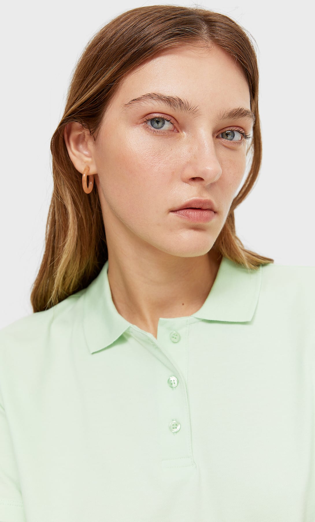 En este caso, tenemos que destacar este sencillo pero eficaz polo de Stradivarius. Con un bonito color manzana, es capaz de favorecer la piel de todas, sin importar tampoco el color de cabello. Además, lo tenemos disponible en otros tonos como el naranja fuerte o el rosa bebé.