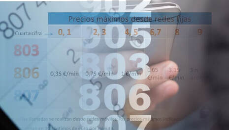 Otros prefijos habituales con tarifas muy altas son los 803, 806, 807 y 905, que conviene evitar todo lo posible. El precio de esta llamada se reparte entre la empresa que presta el servicio y la compañía telefónica. Generalmente la numeración está repartida por tipo de servicio. El 905 es de televoto; el 807 se reserva a servicios profesionales como asesoría o médicos; el 806 para entretenimiento, tipo juegos, apuestas o tarot; el 803 es el que se utiliza en servicios para adultos.