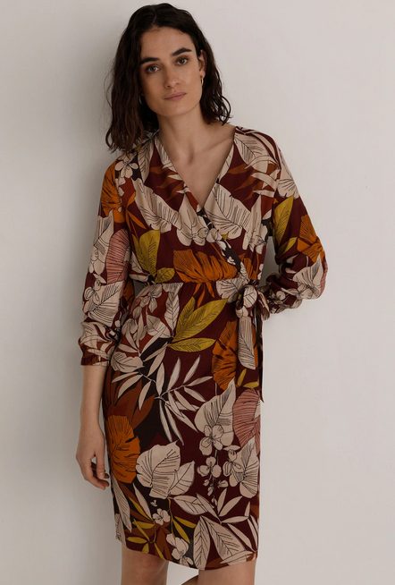 La marca Woman de El Corte Inglés ofrece diseños algo más formales y elegantes, para mujeres que buscan un estilo algo más serio y menos juvenil. Para ellas es este bonito vestido de flores de longitud midi, ligeramente ajustado al cuerpo, con cintura elástica y una lazada en el lateral, manga francesa y escote cruzado. Un modelo muy favorecedor y perfecto para el día a día, combinado con sandalias. El precio es de 48,99€ y lo puedes comprar aquí.