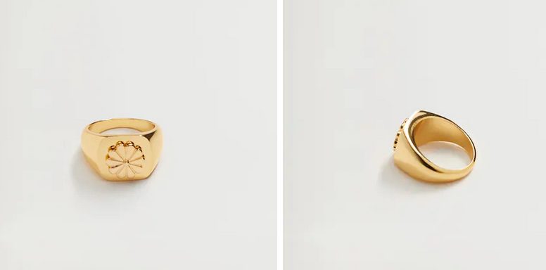 Los anillos están de moda. Solo hay que ver a las artistas y a las presentadoras de la televisión como los luce. Pues bien, en la sección de bisutería de Mango puedes encontrar anillos de todos los modelos y precios. Aunque en este caso nuestra apuesta es por este: Anillo en sello flor.