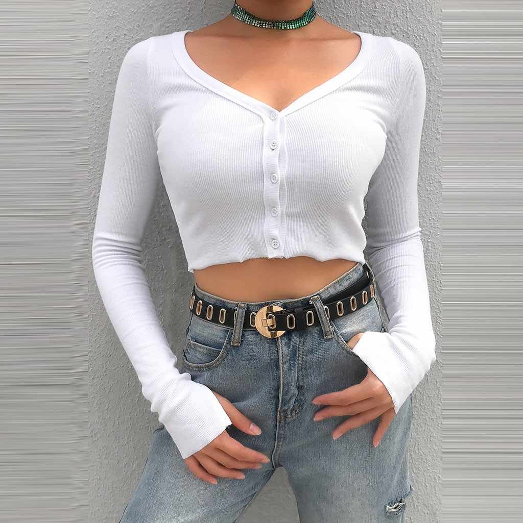 A continuación tenemos una prenda muy versátil ya que la puedes utilizar para muchas cosas, desde salir a realizar tus cosas diarias, hasta para ir a una cena. En este caso presentamos una camiseta corta de escote recto y manga larga, con unos botones delanteros como detalles.