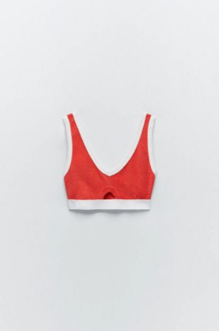 A continuación tenemos un top corto de escote pico y tirantes anchos. Esta prenda diseñada por Zara es perfecta para hacer ejercicio o estar en casa, siendo muy cómoda y sencilla de combinar. Sin lugar a dudas una prenda que resulta ser muy versátil y cómoda.