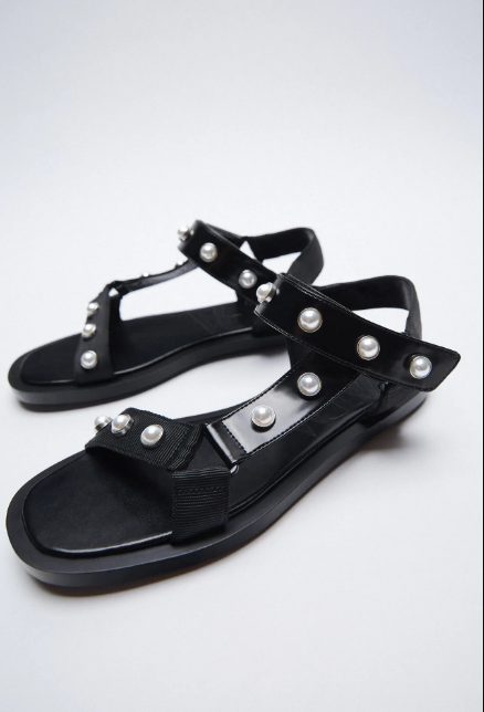 Zara es caracterizada por sus prendas sumamente cómodas y elegantes, como la que presentaremos a continuación. Unas sandalias planas con perlas en las tiras, que son perfectas para casi cualquier ocasión y que puedes combinar con una gran variedad de prendas. Estas sandalias de color negro pueden ser tuyas por el precio único de tan solo 19.99 euros. Se encuentran disponibles desde la talla 35 y 42.