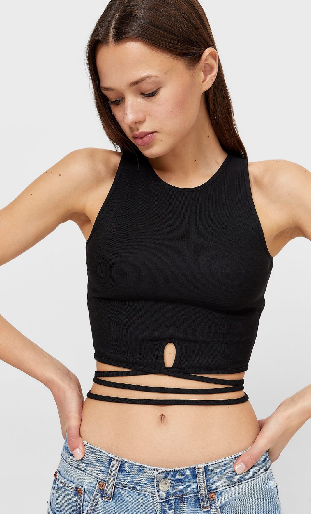 Este hermoso top de cuello redondo y tirantes se caracteriza por ser otra de las prendas solicitadas por las mujeres en épocas de verano. Ya que, permite una frescura en todo el cuerpo, gracias a su estilo y diseño, contando con unos detalles de tiras a tono en la cintura. Además, este fabricado con un 92% de poliéster y un 8% de elastano; se debe de lavar a máquina a una temperatura máxima de 30 grados, con centrifugado corto. Inclusive, no debemos de usar lejía ni blanqueador, no usar secadora y planchar a una temperatura de 110 grados. Entonces, qué esperas para adquirir este hermoso top ottoman tiras por Stradivarius en 9,99 €.