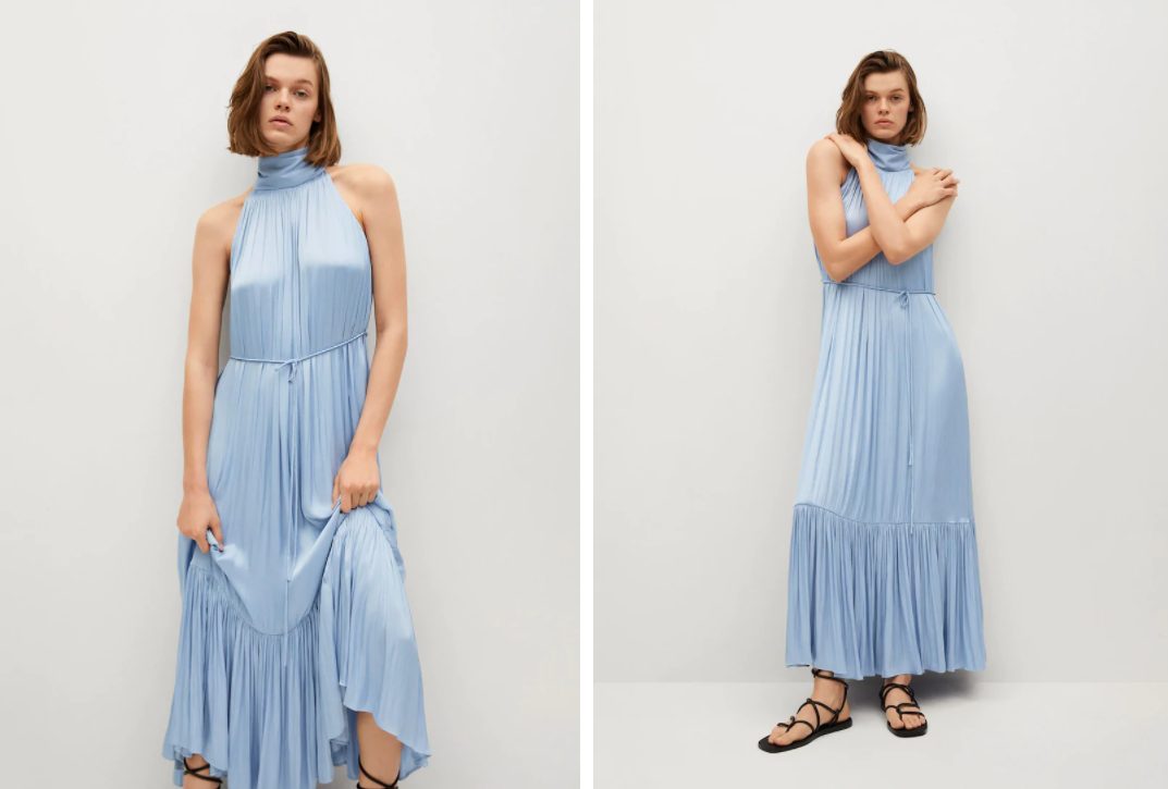5Vestido plisado satinado de Mango en el azul de la temporada