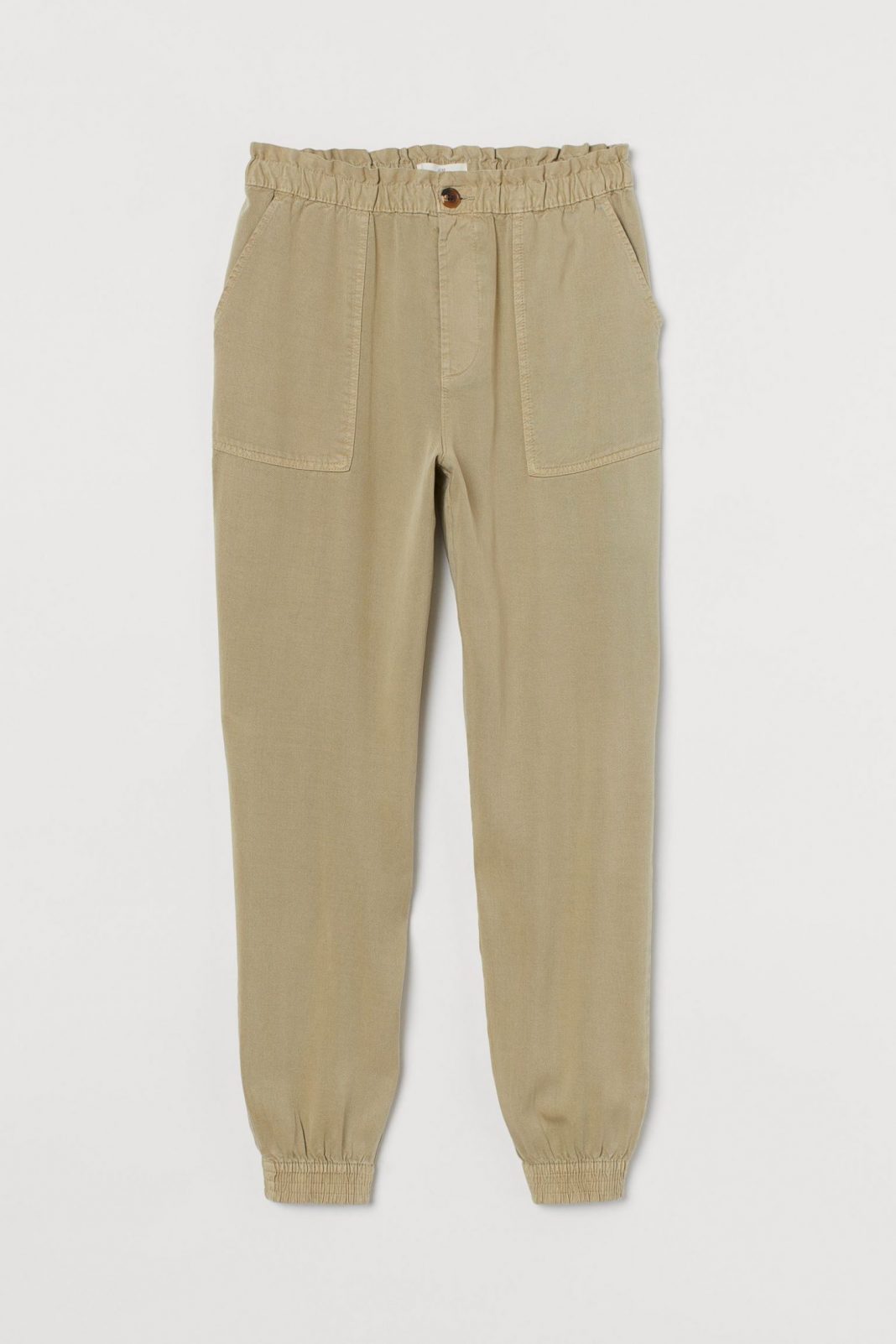Los joggers es una de las prendas más utilizadas actualmente, debido a su versatilidad. En este caso contamos con un pantalón que cuenta con un diseño de cintura elástica con ribete de volante, además que cuenta con bolsillos en la parte delantera y un cierre con cremalleras. No pierdas la oportunidad de comprar esta prenda en H&M por tan solo 29.99 euros, además que podrás escoger entre dos modelos: verde oscuro o caqui.