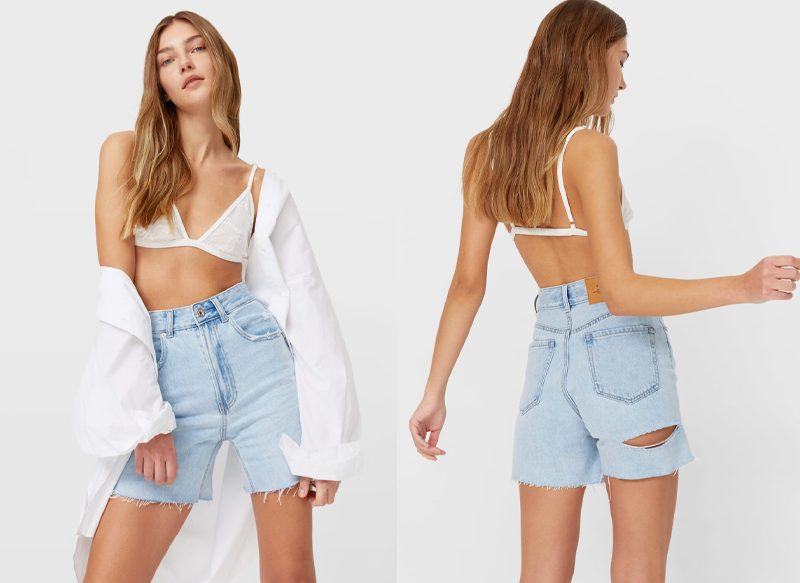 Si eres de las que prefiere apostar por las prendas vaqueras, en la firma del grupo creado por Amancio Ortega puedes encontrar otras muchas propuestas como este short denim longline. Está disponible tanto en denim claro como en denim medio para que puedas elegir la intensidad de color deseada.