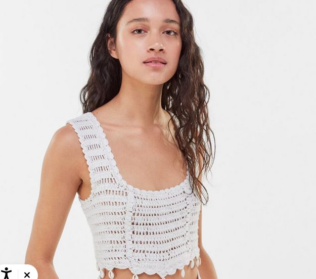 Terminamos nuestro repaso por las estanterías de Bershka con este top crop en blanco, que es perfecto para disfrutar de las próximas vacaciones. Un top de tirantes que no solo destaca por ser de crochet, sino porque además cuenta con un bonito detalle de flecos adornados cada uno de ellos por una conchas.