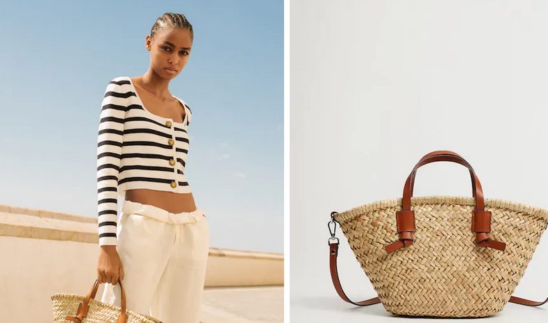 Si algo llama la atención de los bolsos de Mango es que son piezas elaboradas a mano y en su mayoría, utilizando materiales similares que recuerdan a un entorno tropical, de verano y mar. La verdad es que sabemos que es complicado elegir. Y más si te damos esta magnífica opción, un bolso mini capazo doble asa.