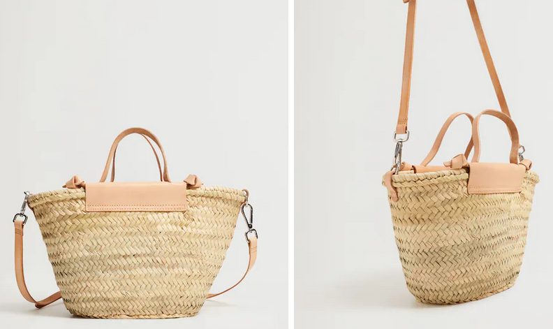 Como estarás viendo, este año, tanto los bolsos como los capazos se posicionan como el complemento estrella para los meses de verano. Así que nosotros tenemos que hacer caso y visitar la sección de Mango y darte a conocer este capazo handmade piel. Su precio es de 39,99 euros, y tenemos para elegir en color crudo o en rosa.