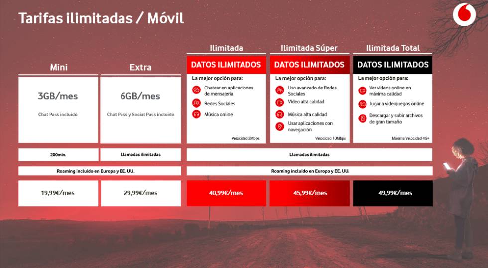 Y después de echar un vistazo a Digi, vamos con los pesos pesados de las compañías. Por ejemplo, Vodafone está ofreciendo durante este mes de mayo un 50% durante 3 meses en sus tres tarifas móviles con datos ilimitados.