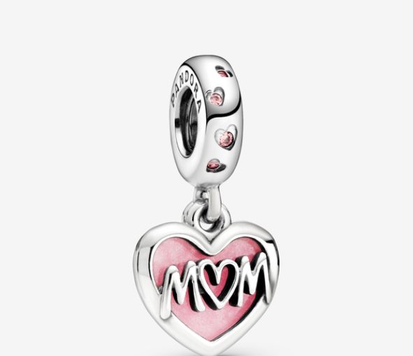 El charm presenta la parte trasera embellecida con esmalte de color rosa aplicado a mano, mientras que en la parte delantera del disco presenta un grabado de la palabra ‘MUM’. Por ejemplo si es su cumpleaños o el día de la Madre es el momento perfecto.