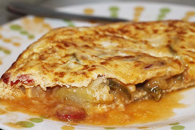 Así, se colocamos sobre el relleno de la tortilla de patatas, se cierra con la que ya está pasada y se deja cuajando del todo unos minutos más. Este tipo de elaboraciones es perfecta para rellenos como la famosa chistorra o cualquier otra carne como un chorizo, los revueltos y el uso de queso.