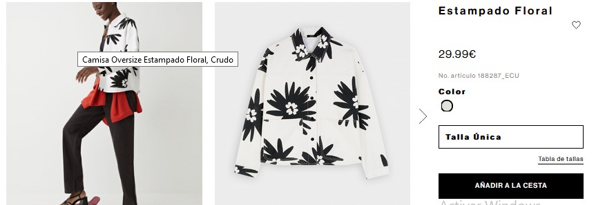 Esta hermosa camisa de estampados florales, es otro de los productos preferidos en esta primavera por las mujeres. Además, gracias a su diseño y estilo la hace perfecta, para que pueda ser usada en cualquier ocasión del día. Está confeccionada en 100% algodón, por lo que la hace fresca y cómoda. Es de color blanco y cuenta con un diseño de estampados florales, que la hace única e ideal para esta temporada en primavera. Entonces, qué estás esperando para adquirirla por Parfois por un precio accesible de 29.99€.