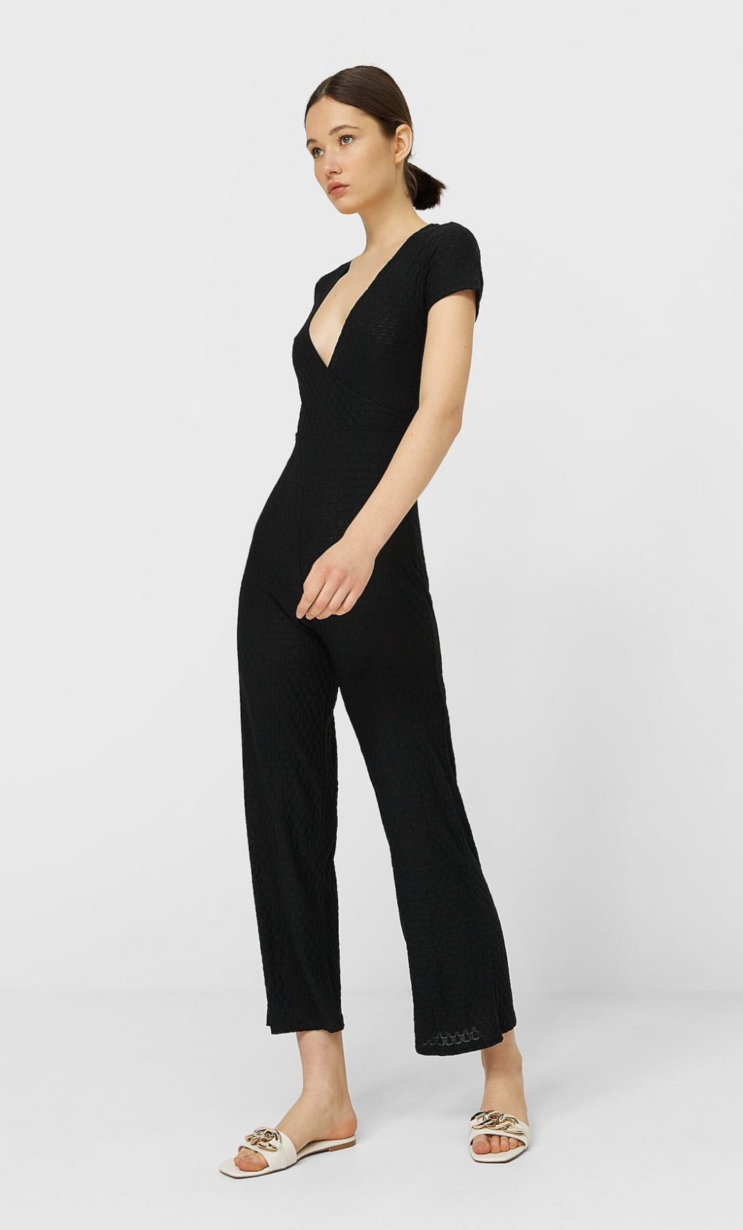 Si estás buscando una prenda para trabajar u ocasiones especiales esta es perfecta para ti. En este caso presentamos un Mono de escote pico con pernera ancha de color negro. Una prenda muy elegante que hará resaltar tu cuerpo y que puedes utilizar para algún evento especial. Si te gustaría adquirir este mono, solo tienes que entrar al sitio web de Stradivarius o acudir a cualquier tienda física y comprarla por tan solo 19.99 euros.