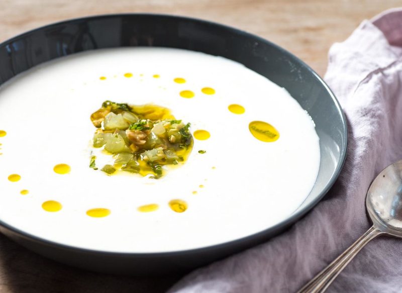El ajoblanco es una sopa fría muy popular en el sur de España, principalmente en las comunidades autónomas de Andalucía y Extremadura. Su ingrediente principal son las almendras y es una de las mejores opciones para poder hacer frente al calor, «rivalizando» así con el popular gazpacho.
