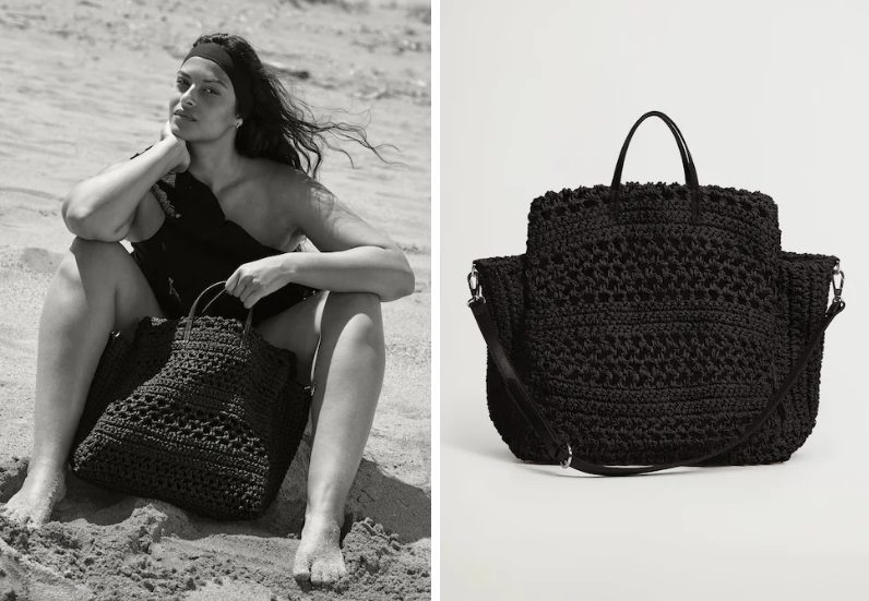Presentamos uno de los más cómodos bolsos, pensando en la mujer de hoy y con un diseño pensado en el día a día de la mujer activa, elegante y emprendedora. También pertenece a la Colección Committed, con Diseño handmade, esta verdadera obra, es tejida de rafia, de tamaño grande, con doble asa corta y otra asa larga que puedes desmontar cuando lo desees, posee un bolsillo interior, está forrado en algodón y con practico cierre de imán. Sus medidas 52.0×34.0x15.0cm (Largo x Alto x Ancho).Luce esta atractiva pieza, pensada y diseñada en la mujer de hoy, su costo es tan solo 79.99 euros en cualquier tienda fisica de Mango.
