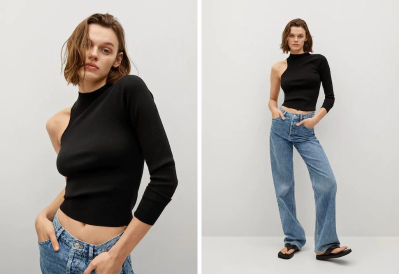 Esta pieza de diseño casual para la mujer elegante, jovial, de comodidad extrema, sin quitar nada del glamour de la mujer que le gusta lucir a la moda. Esta prenda de vestir esta tejida con de punto de canalé, con diseño que se entalla a tu cuerpo, con descote asimétrico, sin mangas, con tirantes anchos, con un diseño estándar, diseñado exclusivamente para ti, puedes ubicar este top en cualquiera de las tiendas de Mango por tan solo 19.99 euros.