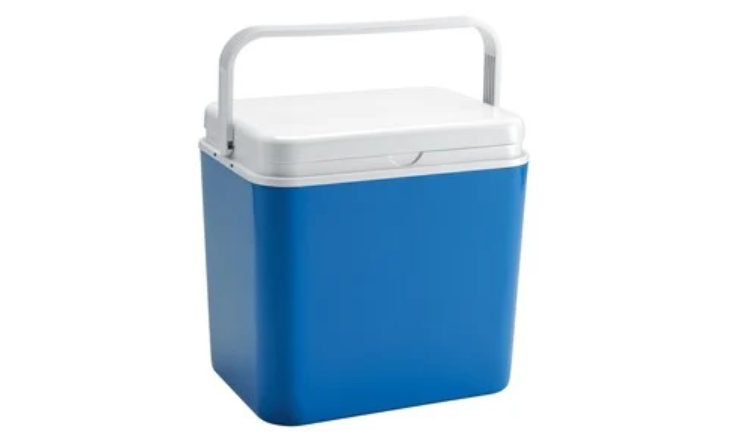 En los míticos colores blanco y azul que estamos acostumbrados a ver, se trata de una nevera tradicional, con asa para facilitar su transporte, donde podremos guardar tanto la comida como la bebida que necesitemos.