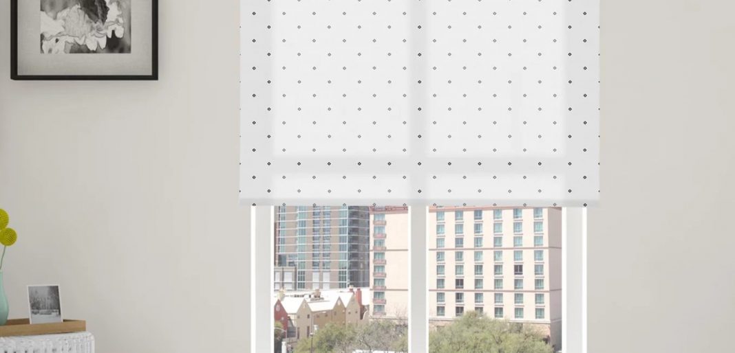 Seguimos con más modelos de estores. En este caso su precio es de 57 euros, pero te vas a ahorrar casi un 45% porque sin estar en oferta su precio es de 85 euros. Se trata de un estor enrollable fabricado en poliéster, con estampado de puntos negros y translúcido. A simple vista es muy elegante y además a un precio de ofertón.