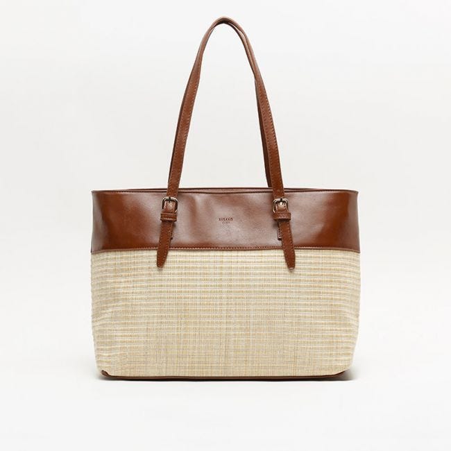Si estás buscando el shopper perfecto, has encontrado la opción perfecta. Presentamos un bolso Mum de la nueva colección de Misako. Cuenta con una gran capacidad, y posee un sector inferior y superior en rafia en polipiel de efecto brillante. En la parte de arriba del accesorio encontramos un cierre de cremallera metálica que da acceso a su interior. Posee una gran cantidad de bolsillos en su interior para que puedas organizar mejor tus pertenencias. Este increíble accesorio puede ser tuyo por tan solo 28.99 euros.