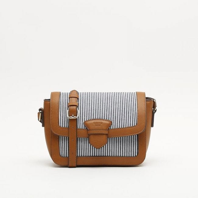 Este bolso de Misako tiene un diseño tipo bandolera que está fabricado por una combinación de materiales. El cuerpo principal es de algodón estampado a rayas marinera y un contraste con simil piel de color marrón. Esta combinación es muy llamativa, que te dará un toque marinero. Por último tiene un cierre de doble seguridad, un interior con cremallera y solapa con cierre magnético. Un accesorio ideal para el día a día y que puede ser tuyo por tan solo 24.99 euros.