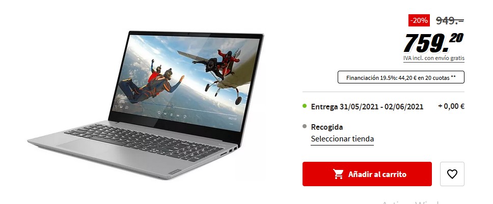 Con la Lenovo Ideapad S340-15, se caracteriza por ser una portátil que tiene la pantalla de 15,6 pulgadas full HD de color gris mineral. Además, cuenta con un diseño completamente ligero y con él podrán realizar todas las áreas, gracias al potente procesador que tiene. Inclusive, la pantalla de 15,6 pulgadas es de resolución full HD 1920 x 1080 pixeles, por lo que podrán disfrutar las películas y fotografías con la calidad de imagen que ofrece. Es un portátil que nos ofrece un disco SSD de 1 TB en el que podremos guardar todos los archivos, proyectos, videos y muchas cosas más. Por lo que, debes de aprovechar la oferta que ofrece Mediamarkt por tan solo 759,20 euros.