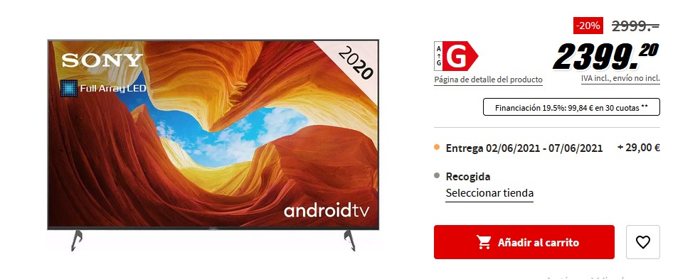 Con el Smart TV LED 85 pulgadas de la marca Sony, fue fabricado para que lo exprimamos al máximo. Cuenta con una alta conectividad, con Smart TV e inclusive con Wifi incorporados, fue preparadas para los contenidos TRILUMINOS Display y sonido Dolby Audio. Disfrutaremos de ellas ya que, cuenta con una excelente relación entre la calidad y precio. Entonces, qué estás esperando para adquirir esta Smart TV LED de 85” por Mediamarkt a un precio accesible de 2.399, 20 euros.