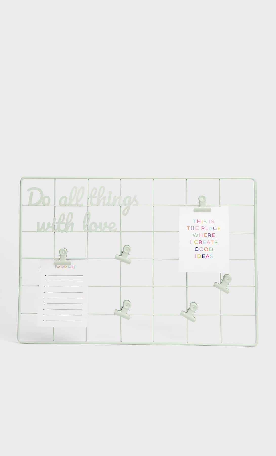 Este tipo de productos tienen mucho éxito en el Ikea, pero es cierto que en lugares como Stradivarius también los puedes encontrar. Se trata de un cuadro organizador donde puedes dejar tus mensajes y buenos recuerdos siempre a la vista en este cuadrito metálico con mensaje incluido. Viene en color agua marina y amarillo.