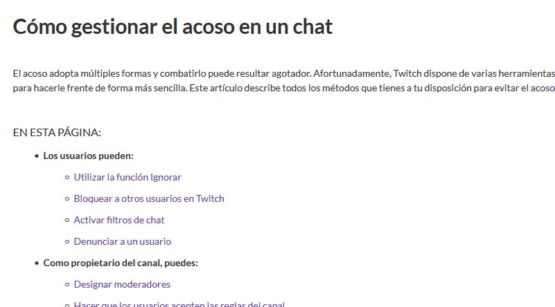No se toleran tampoco las amenazas ni los comportamientos autodestructivos. También se banea, como es lógico, el bullyng. El acoso es un problema demasiado recurrente no solo en Twitch, sino en todo el ámbito de Internet. Hay muchos usuarios que se dedican a hacerlo y esto se puede denunciar.