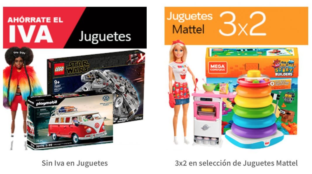 Podemos encontrar descuentos en la zona de juguetería de las marcas más famosas. En productos de Lego o Playmobil podrás ahorrarte el IVA, mientras que en una selección de los famosos juguetes de Mattel te llevarás uno gratis al comprar dos. Muchos niños cumplen años en verano y además terminan el colegio, por lo que les harás felices con un regalito.
