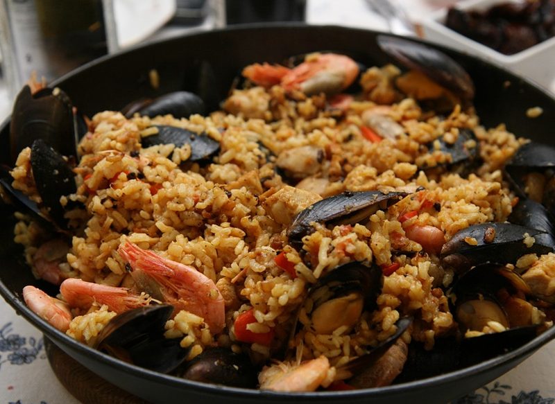 La paella es uno de los platos más característicos de la gastronomía española. Una de sus partes, el socarrat, es el arroz quemado que se queda en el fondo de la paella en los casos en los que el fuego está alto al final de la cocción.