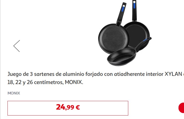 Este juego de sartenes está conformado por tres tamaños diferentes, como es el de 18, 22 y 26 centímetros de diámetro. Para que podamos cocinar nuestros platos y recetas favoritas independientemente de la cantidad de personas que tengamos en los compartir familiares. Son sartenes que cuentan con un recubrimiento interior antiadherente XYLAN de WHITFORD libre de PFOA, además cuenta con un mango de baquelita termo resistente. Inclusive, son perfectos para todos los tipos de fuegos, incluido los tipos de inducción. Entonces, qué esperas para adquirir estos sartenes por Alcampo a un precio accesible de 24,99 €.