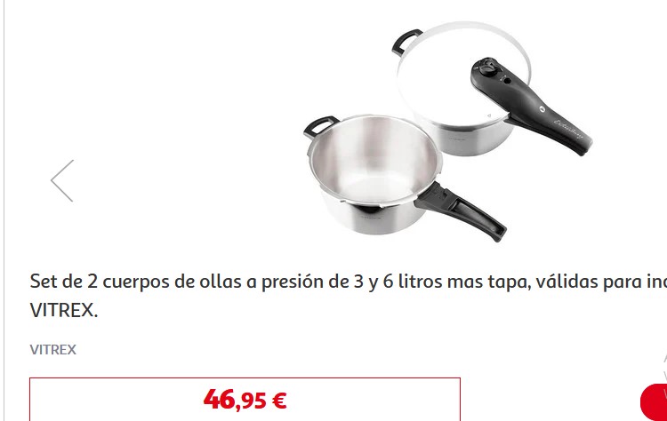 Este perfecto set de ollas a presión, es otro de los productos para el hogar que es adquirido por amas de casas. Ya que, es perfecto para preparar grandes recetas y, además, para ablandar granos, cualquier otro alimento. Es un set que está conformado por 2 ollas a presión de 3 y 6 litros, incluyendo la tapa, además son válidas para la inducción VITREX. Son fabricadas en material de acero, son perfectas para las cocinas de inducción, vitrocerámicas, eléctricas. Inclusive, son aptas para los lavavajillas y cuenta con número de pieza de dos unidades. Entonces, qué estás esperando para adquirir este set de cuerpo de ollas a presión por la plataforma de Alcampo a un precio accesible de 46,95 €.